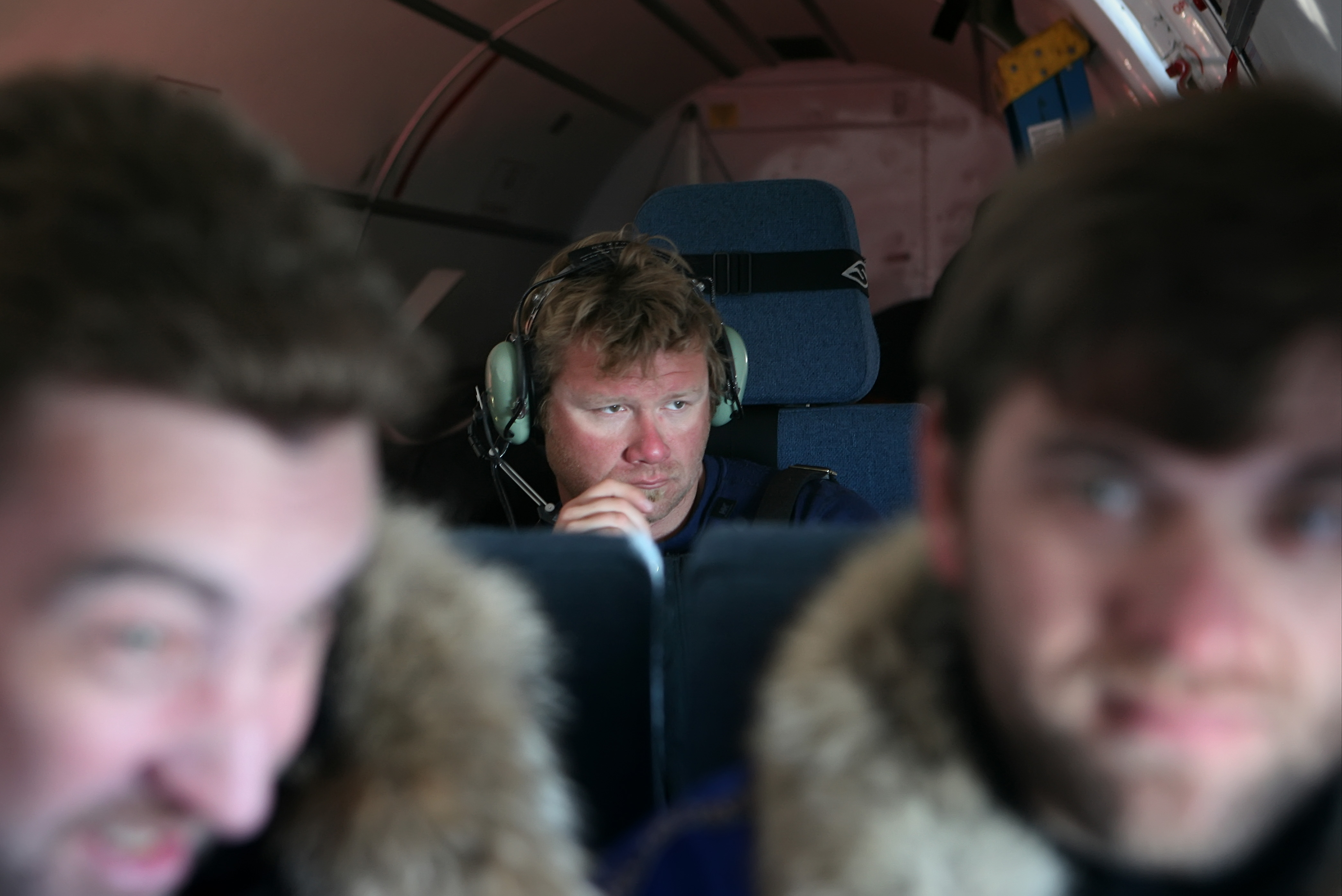 Пара часов шатаний и все уже на взводе, когда легкий ветерок расчищает полосу – мы грузимся за 10 мин и взлетаем. Последний пятый перелет на пути из Москвы мы летим на DC-3 Basler – 18-местном канадском самолетике, где шумит, как на заводе, и не сильно теплее, чем за бортом. Через пару часов – всего лететь около 4 – начинает ощущаться нехватка кислорода. Я дышу часто и глубоко. В Антарктиде вообще более тонкая атмосфера из-за вращения Земли и 3 км высоты ощущаются, как 4 – 4,5 в Альпах. Тем более в этом самолетике – дышать натурально трудно.