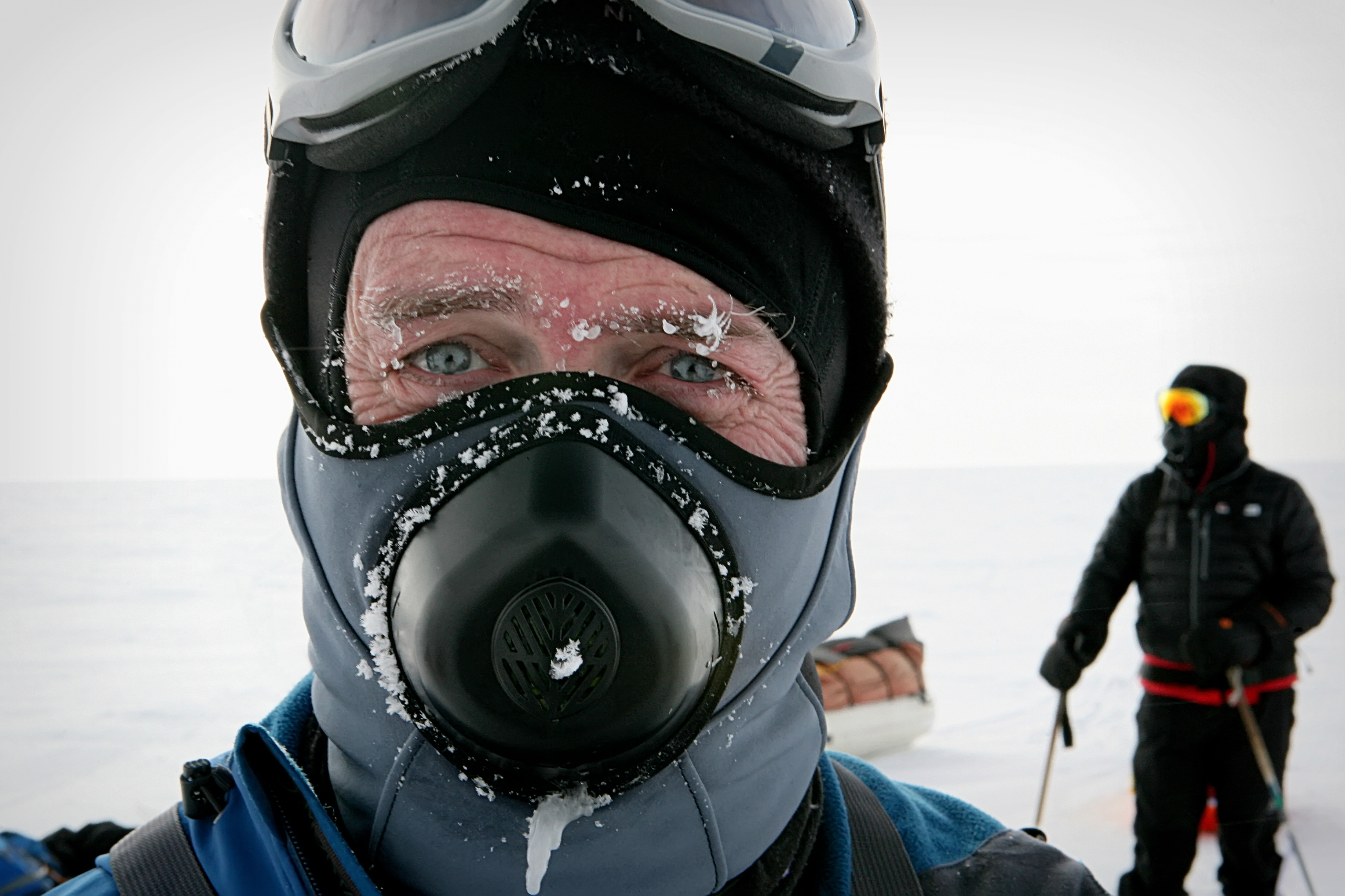 Погода отменная – похоже на Альпы в солнечный день. Температура около -20C, ветер 5-7 kts. Мы идем переходами по 1ч 15мин с 10-минутным перерывом на шоколадный батончик и глоток из термоса. Каждый такой переход покрывает около 1,5 мили (2,5км) – это может показаться немного, но это чертовски изматывает. Если сделаешь несколько резких движений, то появляется одышка, как если забежал на 3 этаж, стоишь и ловишь воздух. Если двигаешься быстрее, то сердце колотится как бешеное, а спина начинает потеть – это самое опасное из-за того, что пот моментально замерзает, если останавливаешься, а это уже полпути к переохлаждению. Наш темп пока низковат, но сильно быстрее все равно не будет – максимум 2 мили в час … Скорее будем наращивать время перехода. Опять же, 40-килограммовые санки дают о себе знать…