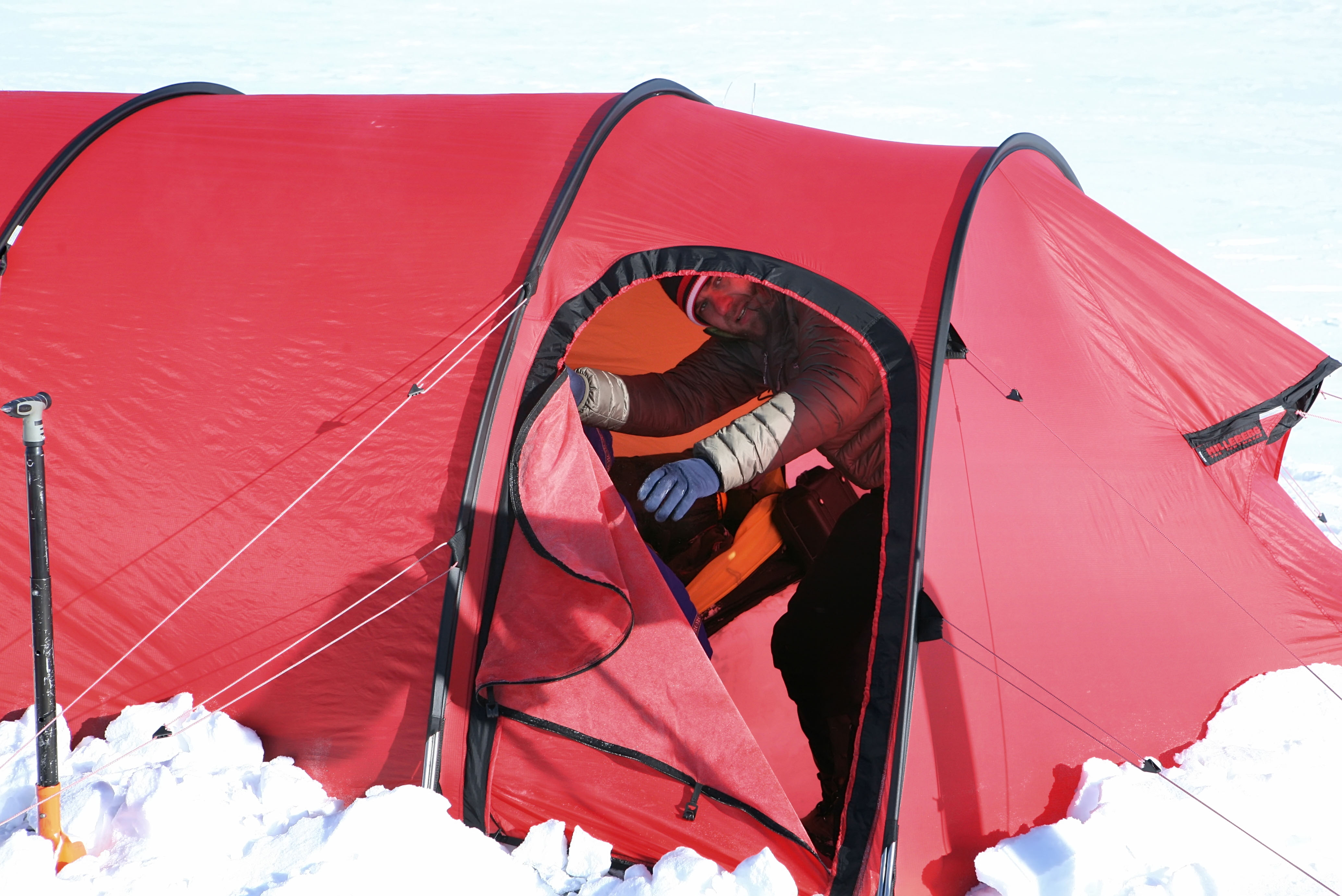 Весь вечер вчера после посадки и всю ночь штормовой ветер 40 kts (20м/с). Вчера унесло нашу палатку с Лехой внутри =) Я решил поплотнее уложить вещи и только приоткрыл дверь, как мощный порыв дернул ее как парус и сорвал сразу с 10 кольев. Пока я, стоя на коленях, держал палатку обеими руками за край и вопил, Леха выскочил в одних подштанниках и носках… Палатка без якоря взмыла в воздух.
