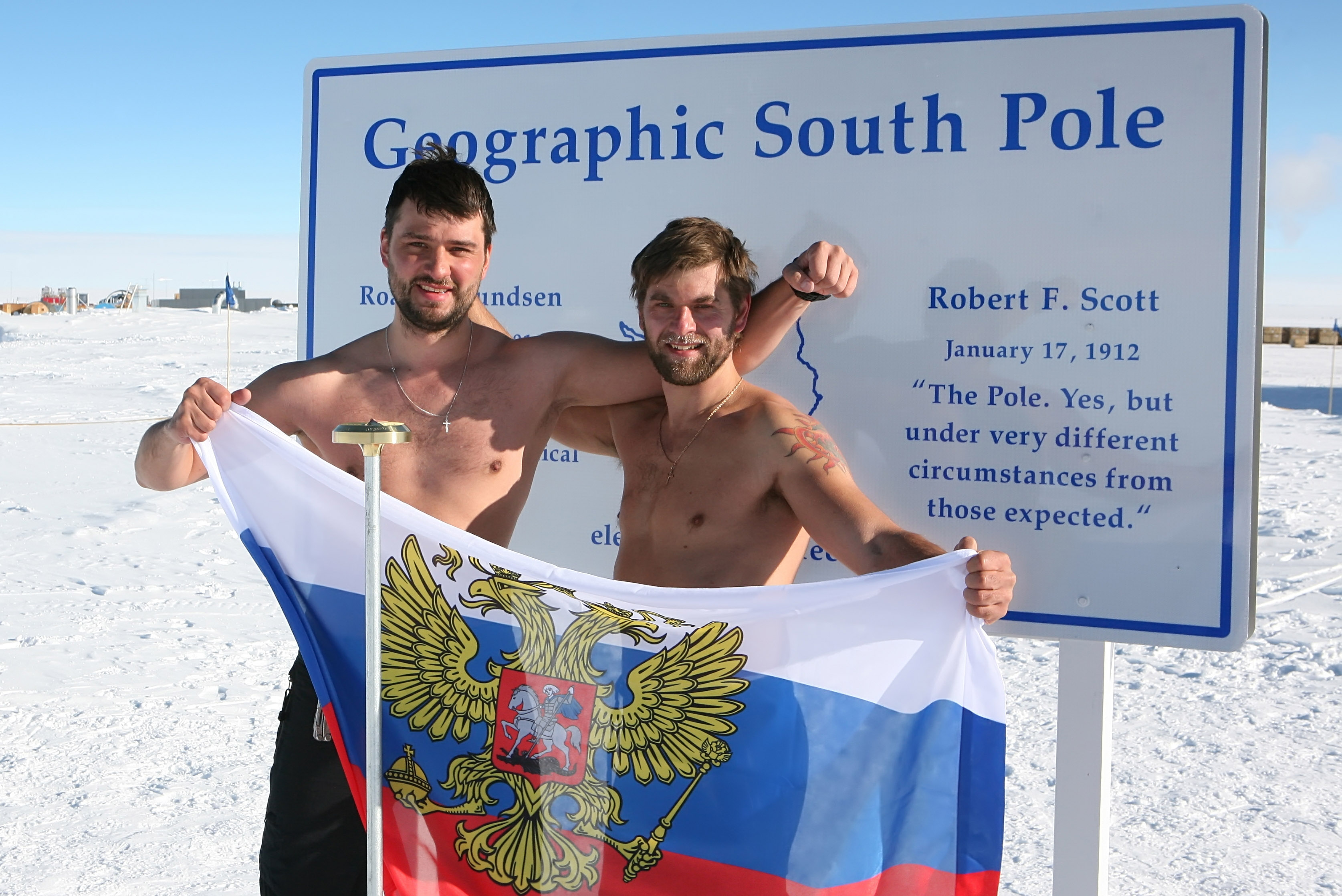 Все утро посвящено фотографиям с флагами, групповым и одиночным композициям. Кейт приходит с баночкой – там прах друга, тот просил развеять на Полюсе.