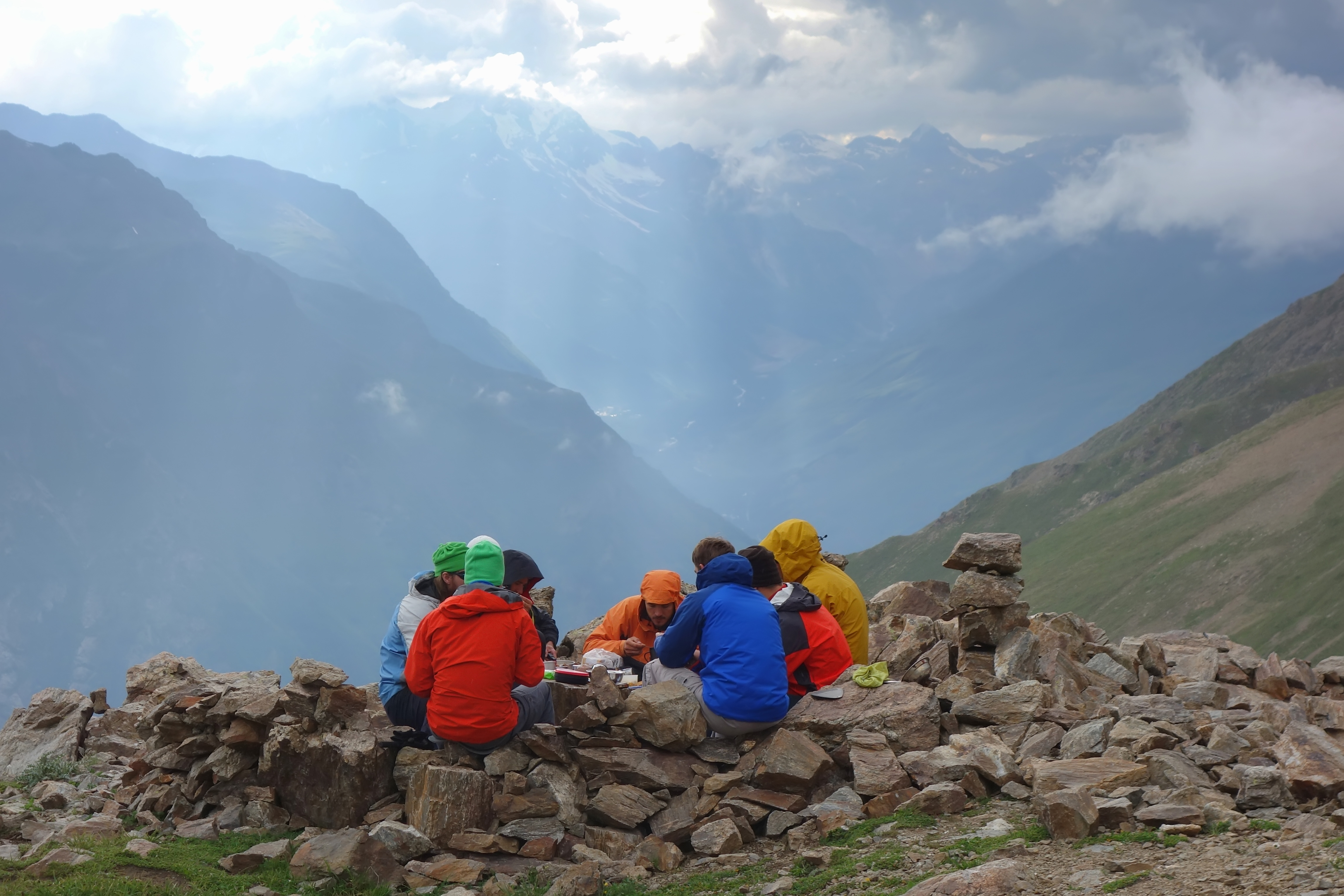 День 5. Этой ночью спится лучше, с аппетитом все отлично, парни в хорошем настроении. Подъем на вершину Андырчи (3900м) занимает всего 2.5 часа, даже без остановки на перевале. Видно, что организм привыкает к высоте и нагрузкам.