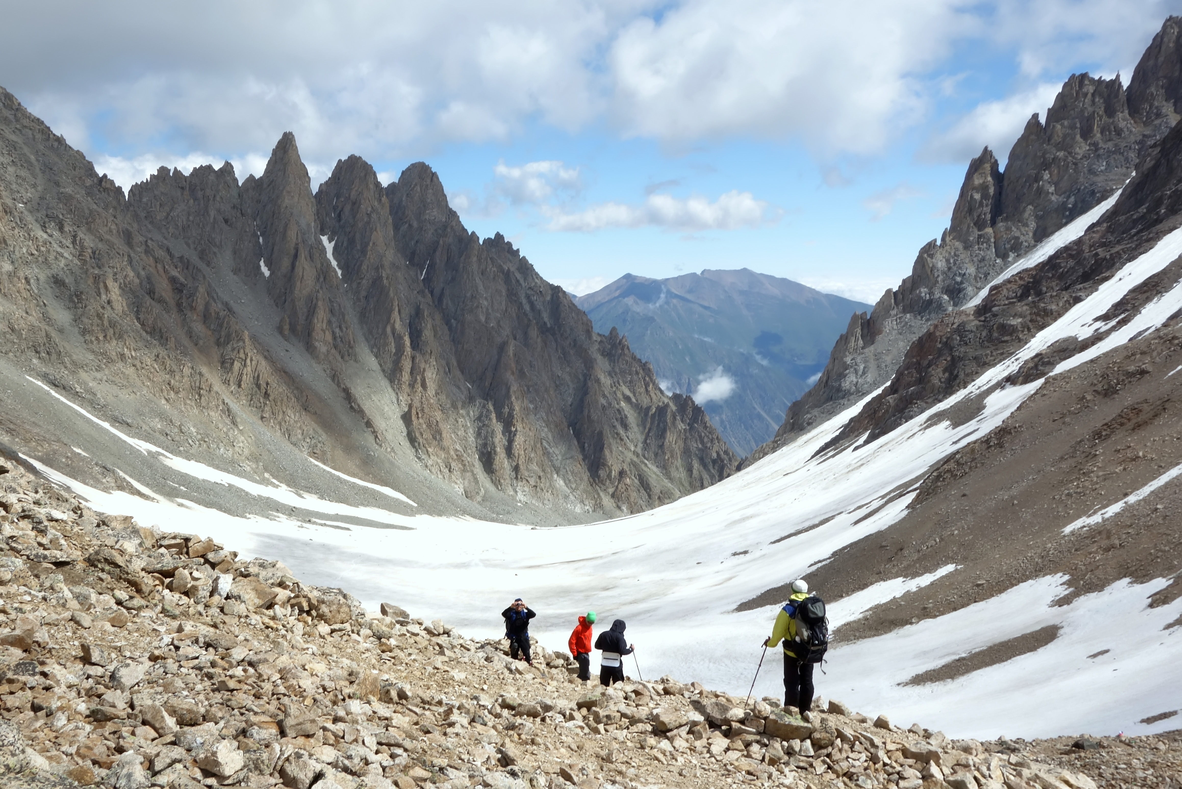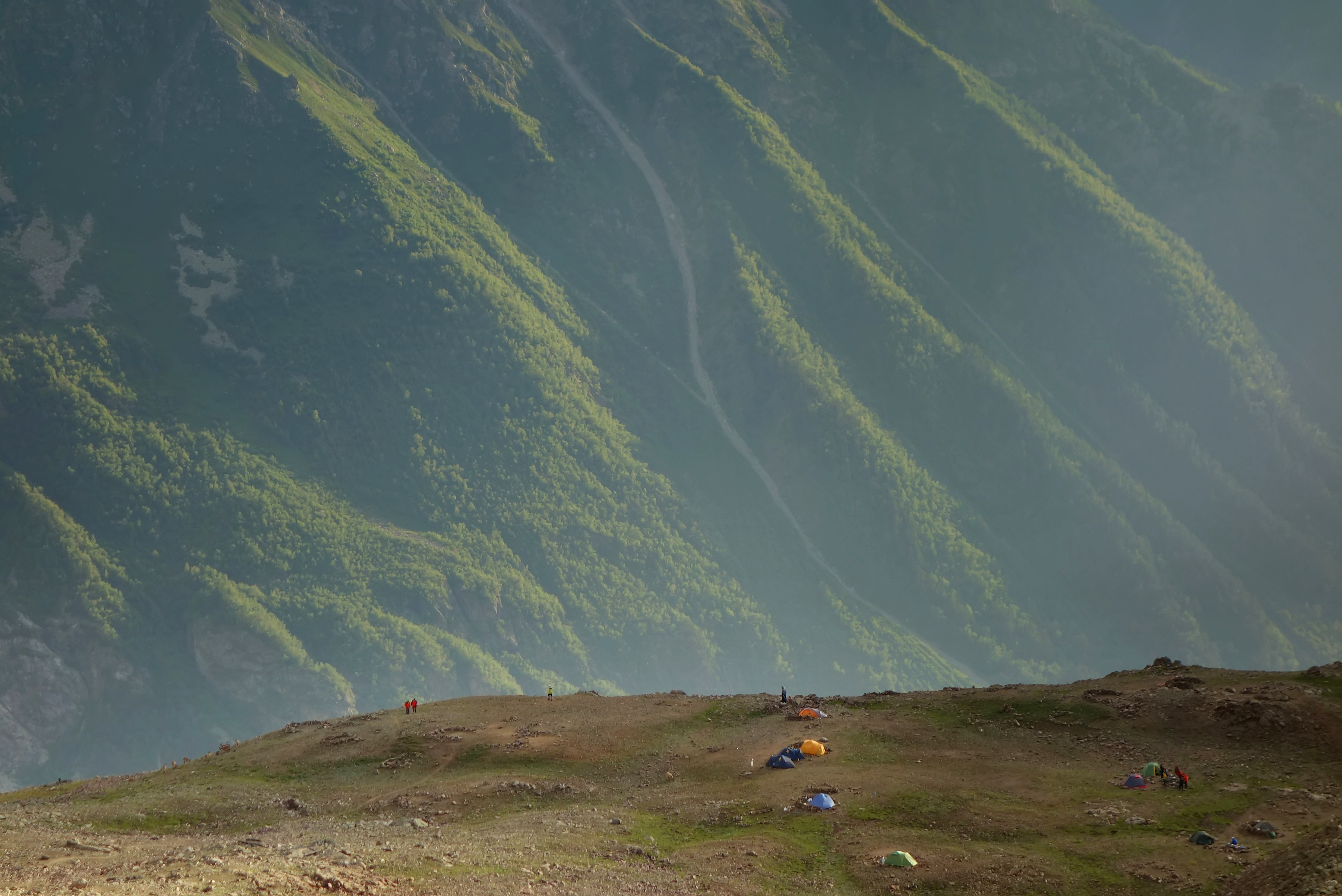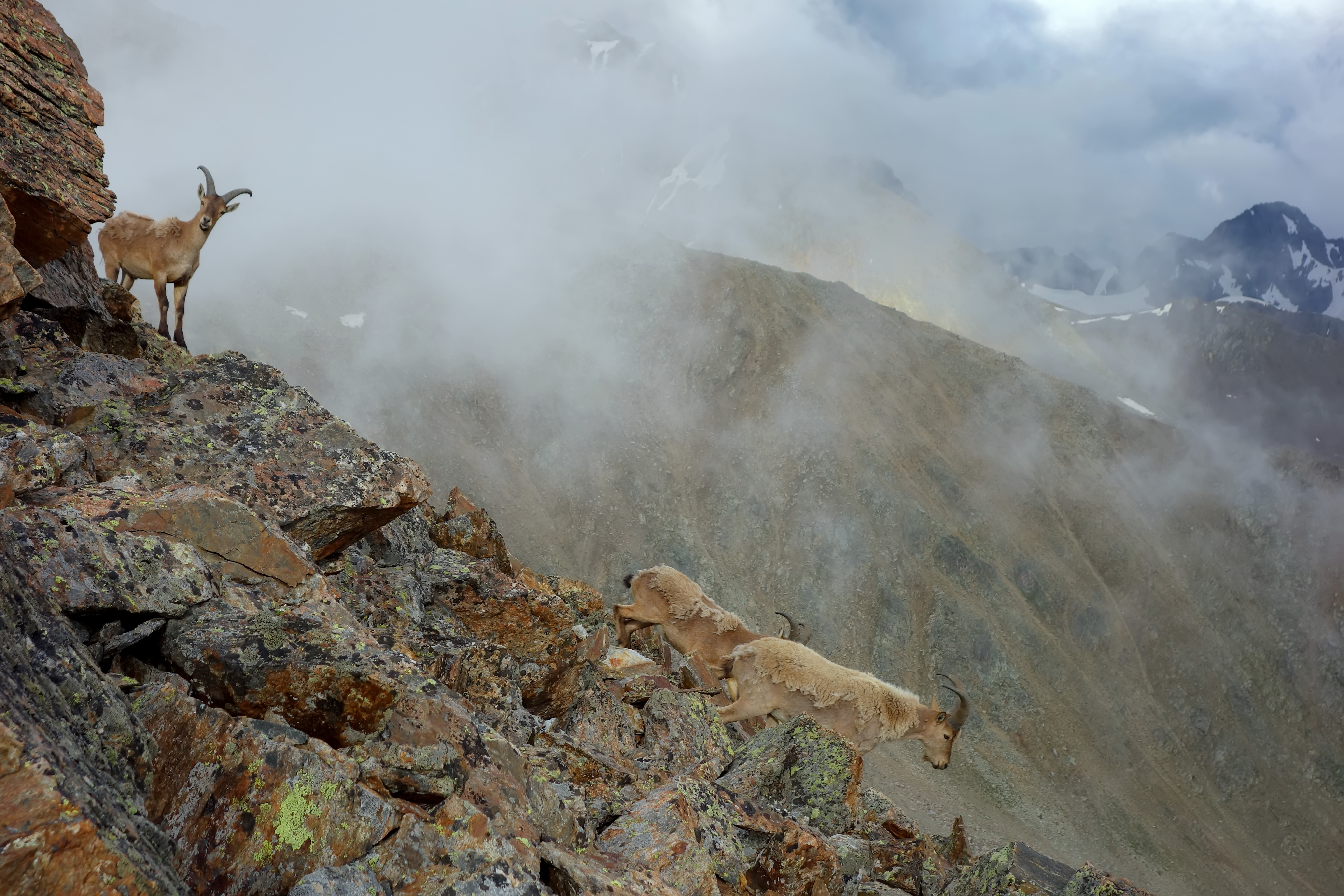 Ночевки и правда теплые – на склонах напротив лежат ледники, у нас же пастутся горные туры в поисках редкой и пожухлой, но все-таки травы. Первая ночевка на высоте в палатке: разряженный воздух, шум ветра, кокон спальника сковывает привычные движения. В итоге прерывистый неглубокий сон, и только матерый храп из палатки неподалеку позволяет незлобно порадоваться за удачливого соседа.