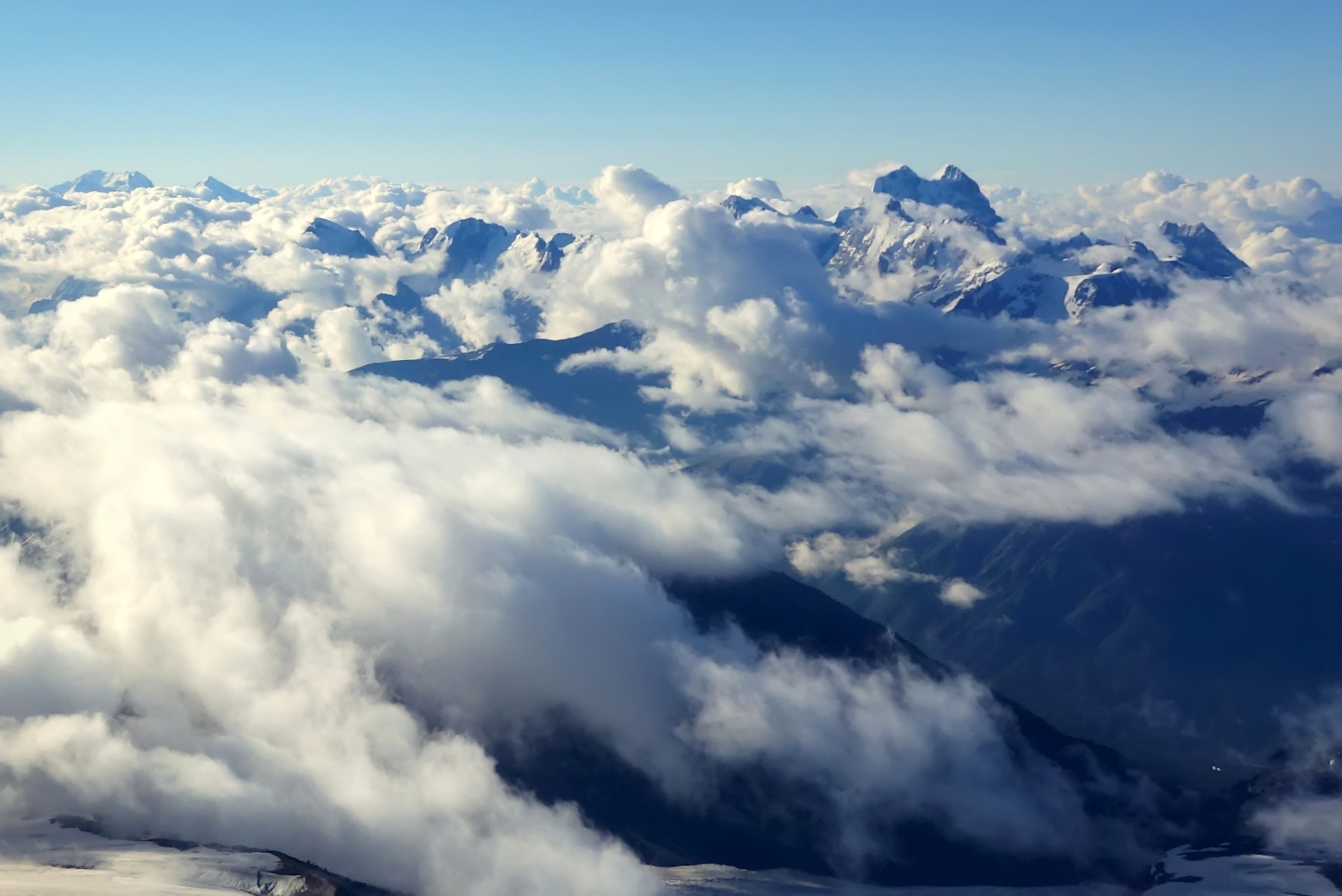 Светает, мы над облаками. Вид открывается сумасшедший и дыхание захватывает.