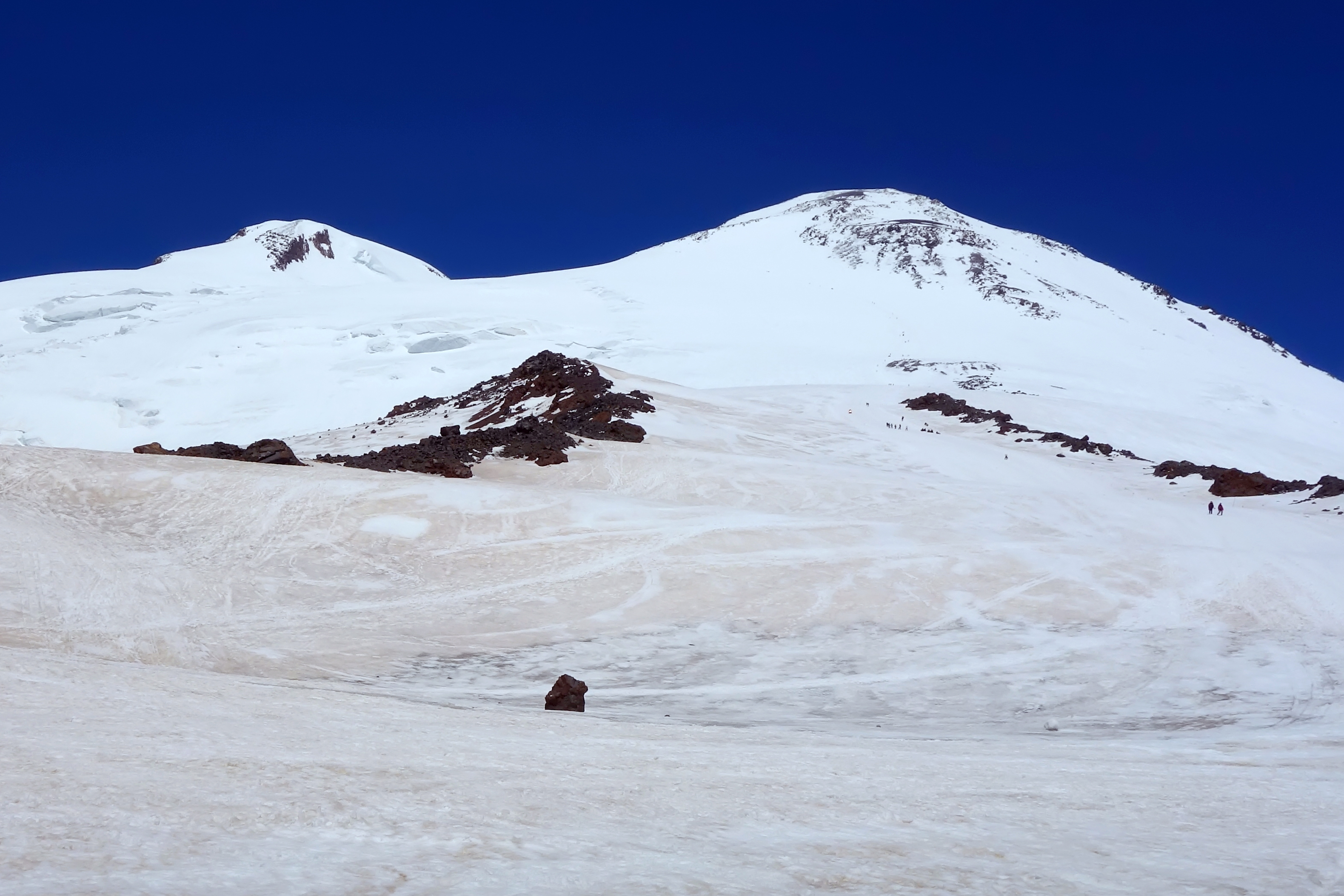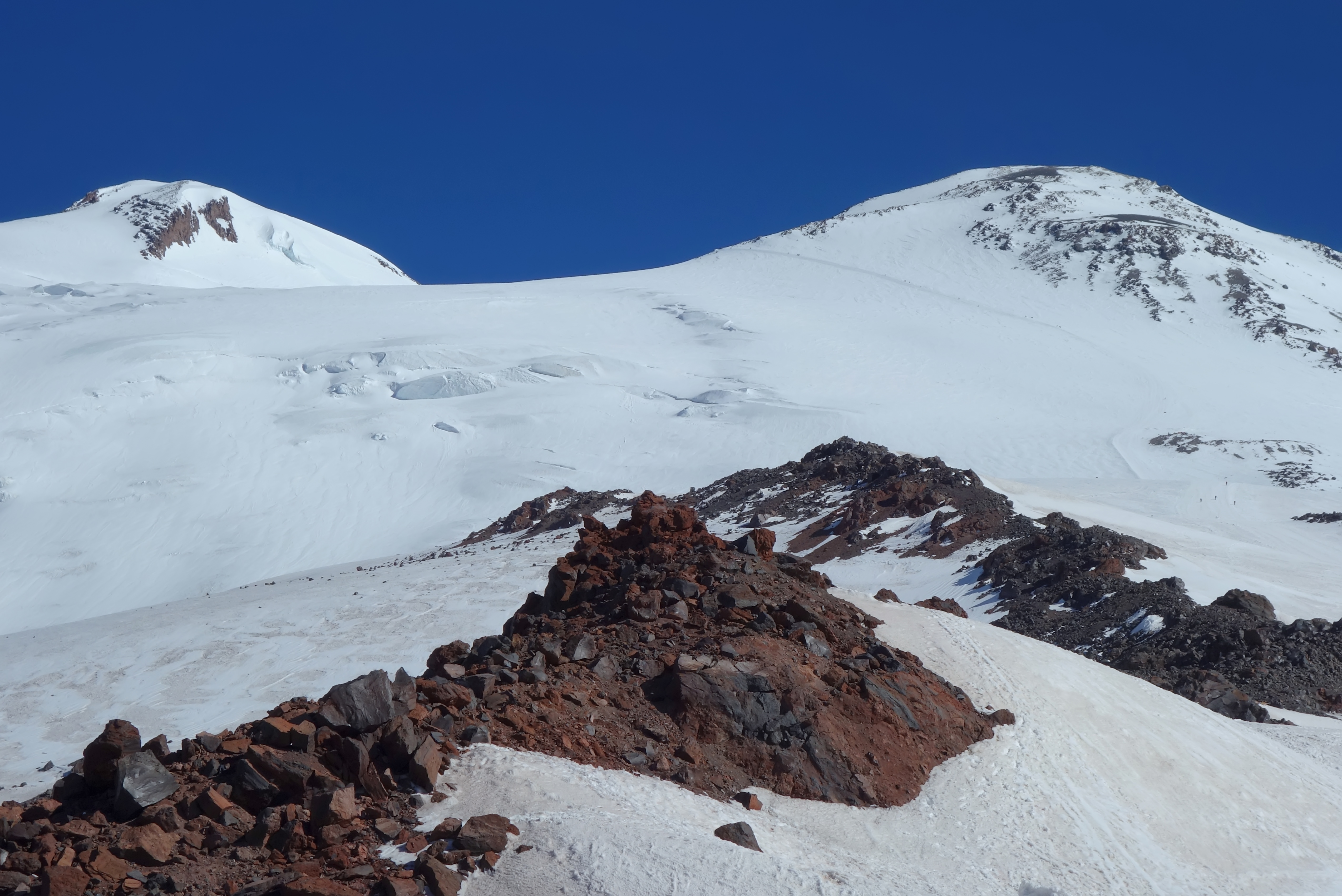 Эльбрус – высочайшая вершина Кавказа, России и Европы, расположенная на границе республик Карачаево-Черкесии и Кабардино-Балкарии и представляющая собой двувершинный седловидный страто-вулкан. Западная вершина имеет высоту 5642м, восточная — 5621м. Они разделены седловиной 5350м и отстоят друг от друга примерно на 3км. Последнее извержение датируется 50г. н.э. ±50 лет.