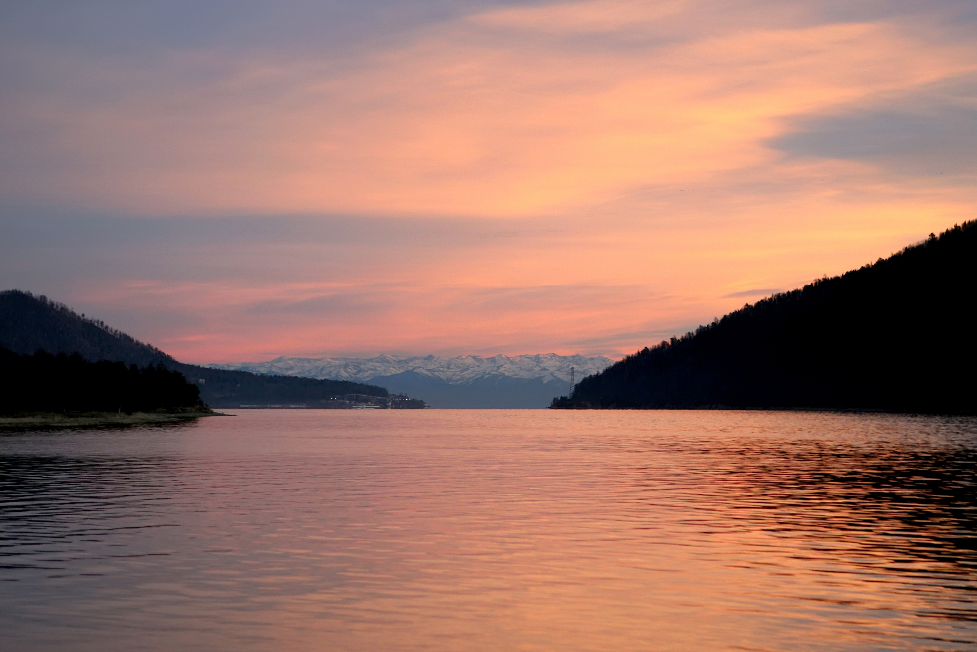 И снова исток Ангары, слева Листвянка и на горизонте Хамар-Дабан.