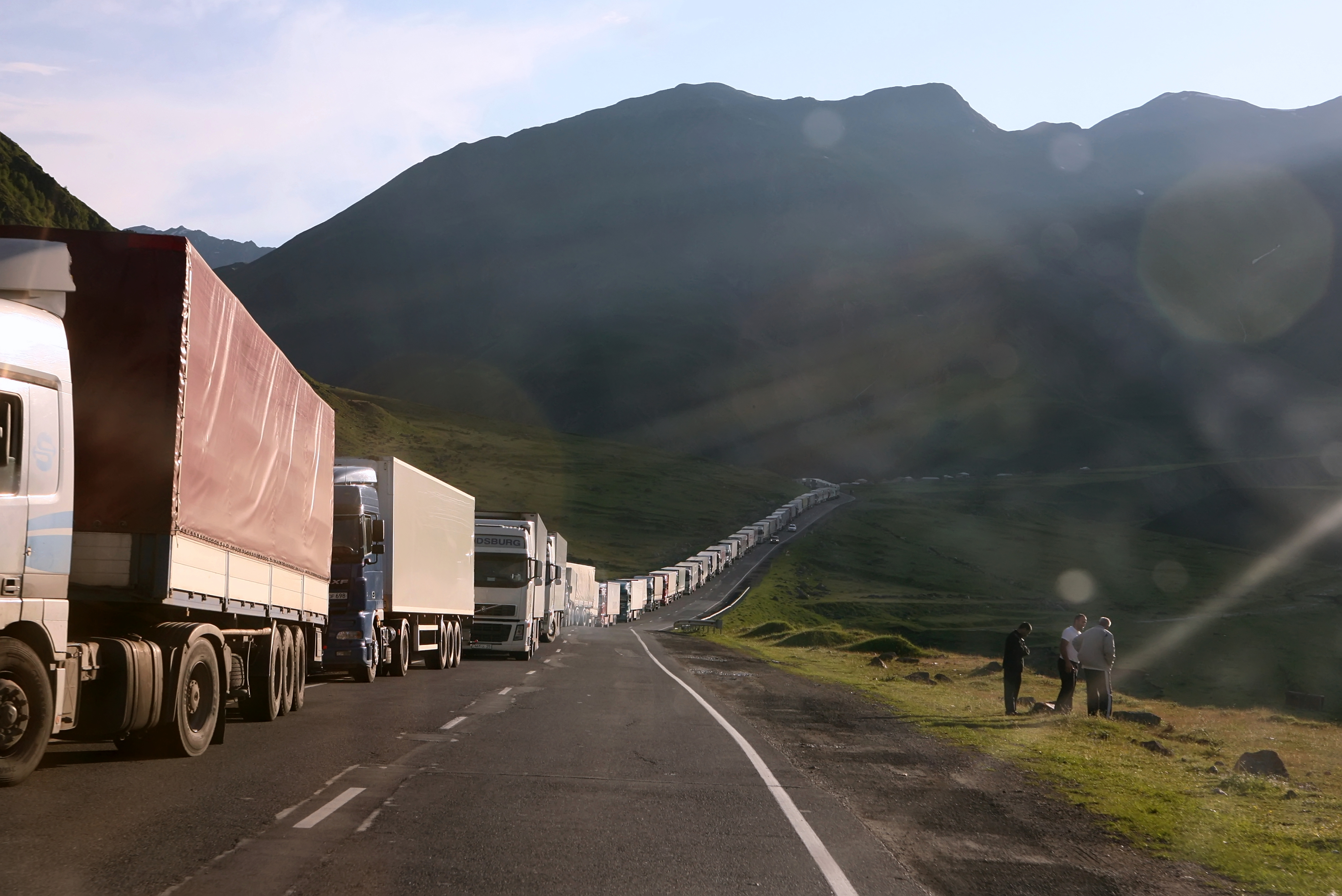 Все эти часы приходилось постоянно сопротивляться потоку мутных камикадзе, пытавшихся с разгона втиснуться в начало очереди при полной апатии следящих за порядком бойцов. Подошедший было “посредник” с предложением показать быструю дорогу за безвозмездный дар в 5 т.р. был отправлен обратно по принципиальным соображениям. А на въезде в Грузию нас встречала просто гигантская многокилометровая пробка из ожидающих своей очереди фур… на 15-м радиоканале дальнобойщиков царил бессловесный сгусток мата.