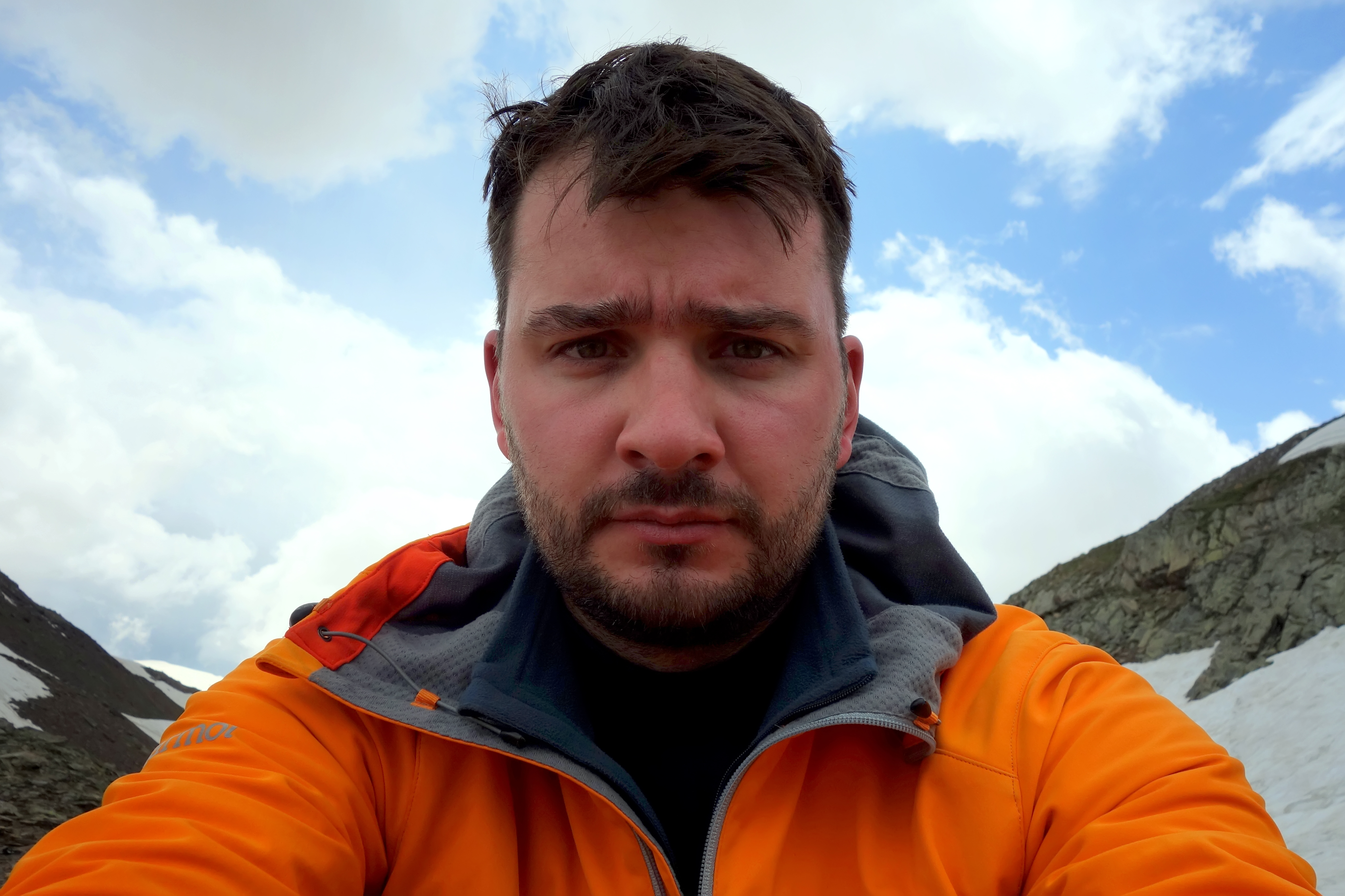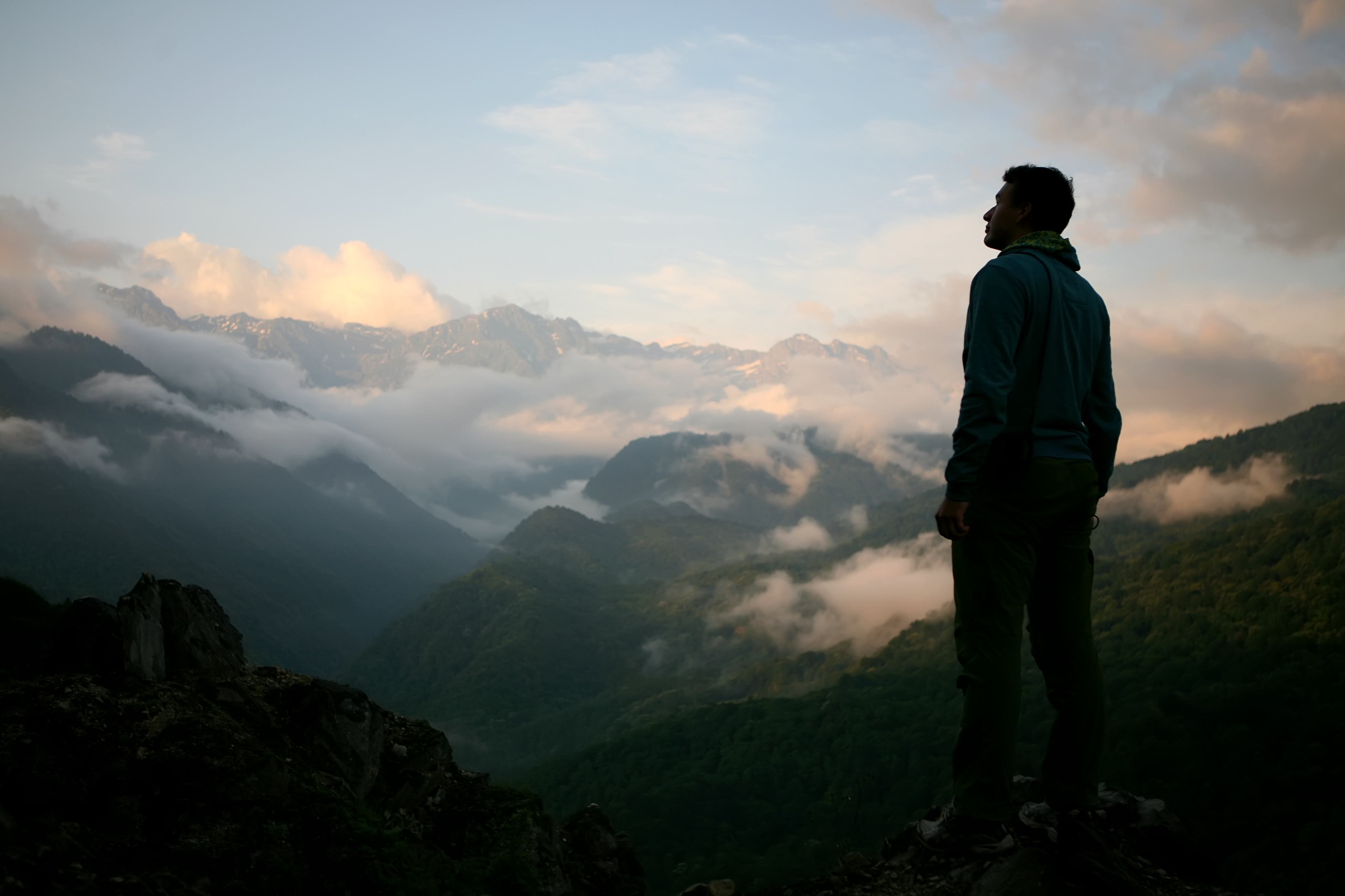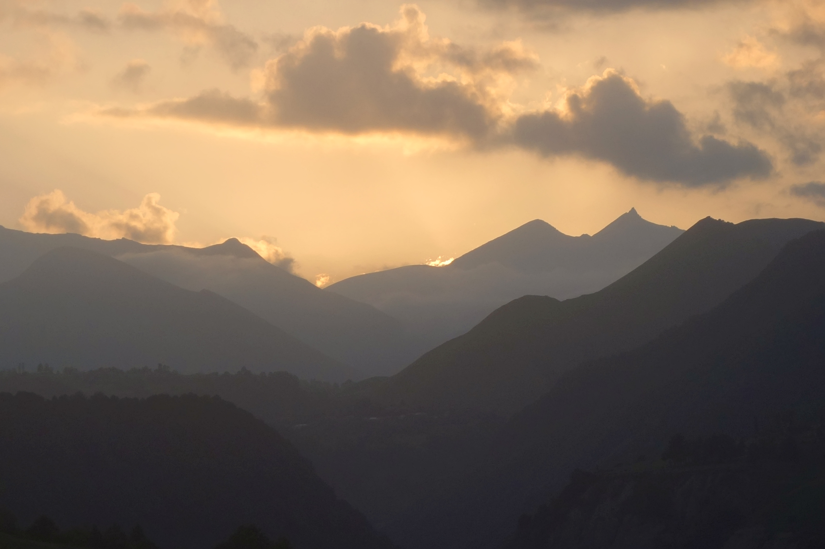 На следующий день был запланирован подъем еще на 700 м, на перевал Джвари (Лайла), где на высоте 3,400 м мы собирались установить лагерь в расчете на 2 ночевки. Склон постепенно менялся с травянистого на каменисто-сыпучий, а после и вовсе снежный. Сам по себе подъем несложный, но под рюкзаком пришлось поработать. Для лучшей акклиматизации было решено сходить на ближайшую вершинку, сыпучий склон которой возвышался практически от лагеря метров на 200. Поднявшись перед самым закатом, мы получили в награду потрясающий вид на кавказские горы. Особенно здорово подсвечивалась г.Тетнульд, как ее еще называют – Сванская невеста.