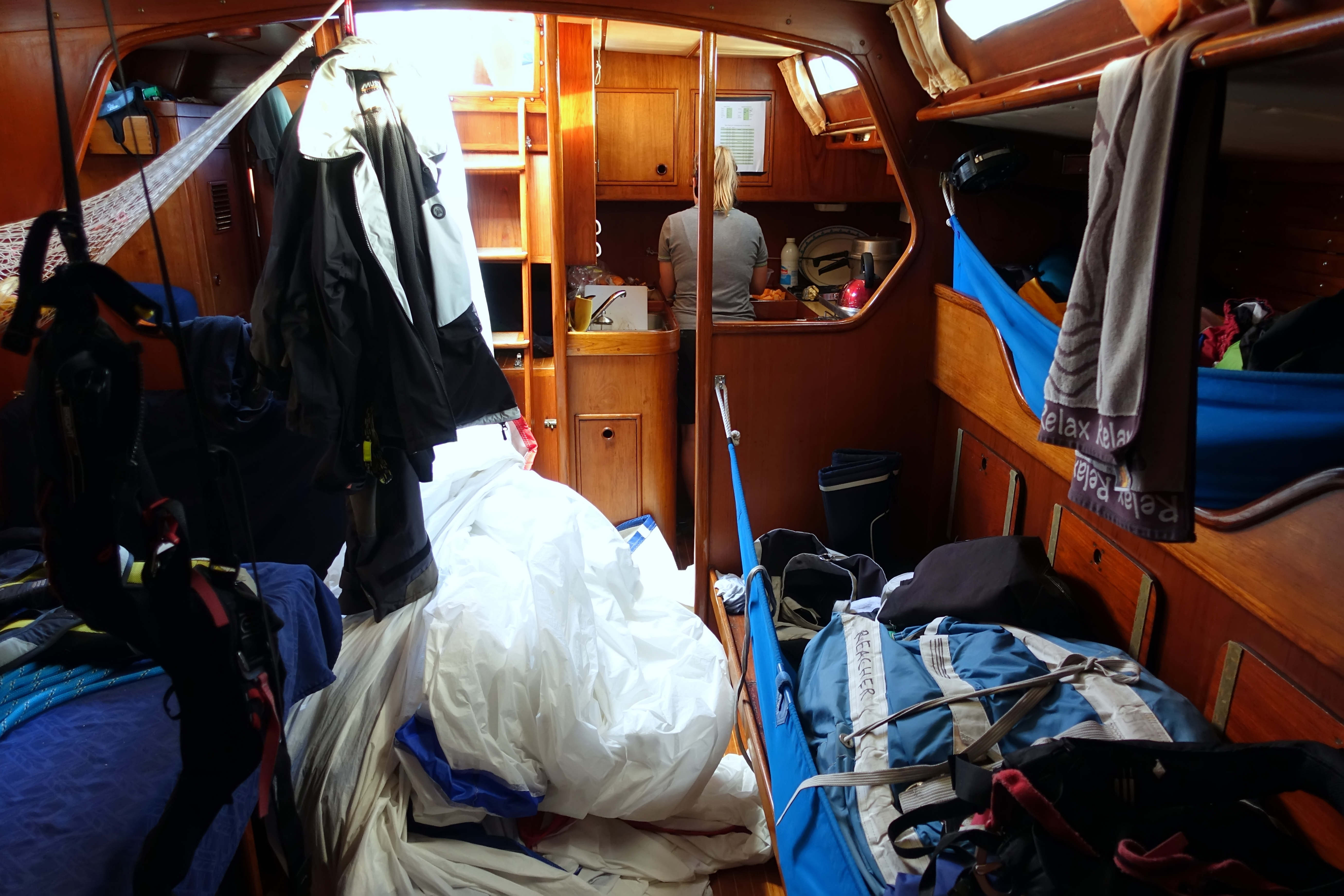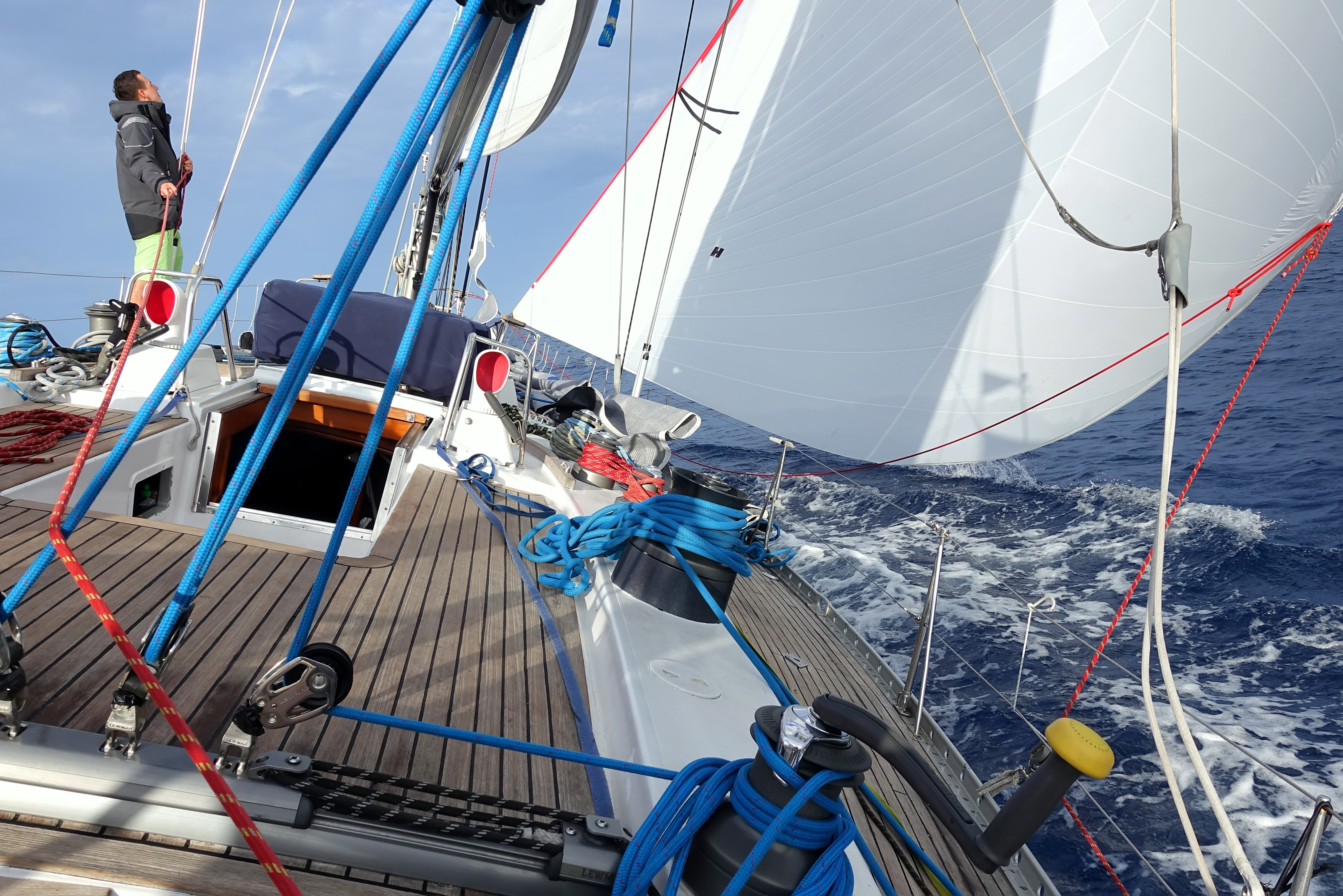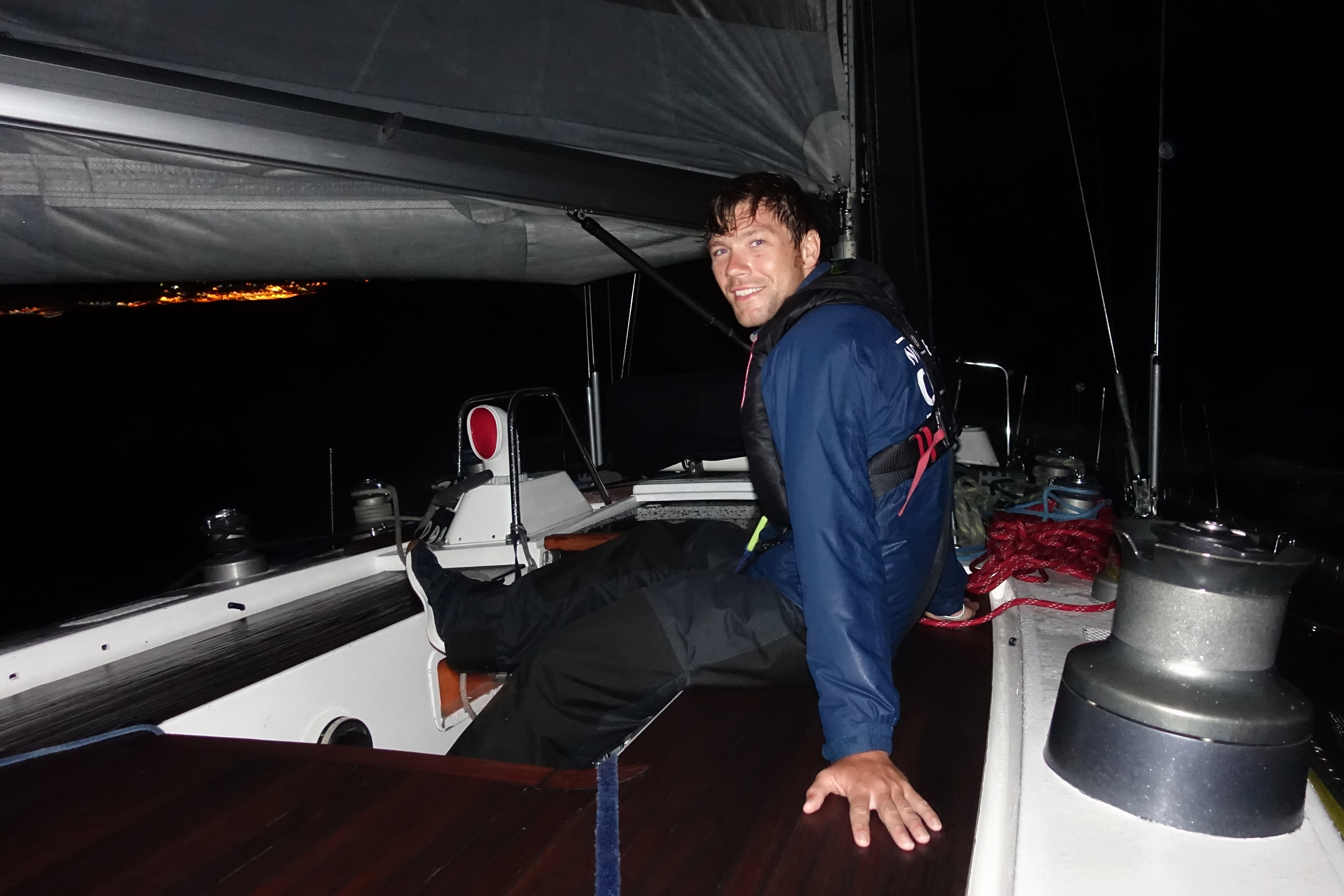 Ночью сквозь сон я услышал какой-то шум и переполох, однако накопившаяся за 4 дня усталость от урывочного сна между вахтами тут же вырубила организм обратно. Оказалось, что вторая вахта поймала шквал, порвала большой спинакер и дальше с грохотом и прибаутками пыталась поднять громадный прилипший к воде парус на борт. Шел ливень, все бегали по лодке – скучно не было никому, а я спал. Нашей вахте пришлось ставить запасной разноцветный спинакер поменьше. Он, впрочем, тоже неплохо работал и позволил нагнать еще пару лодок.