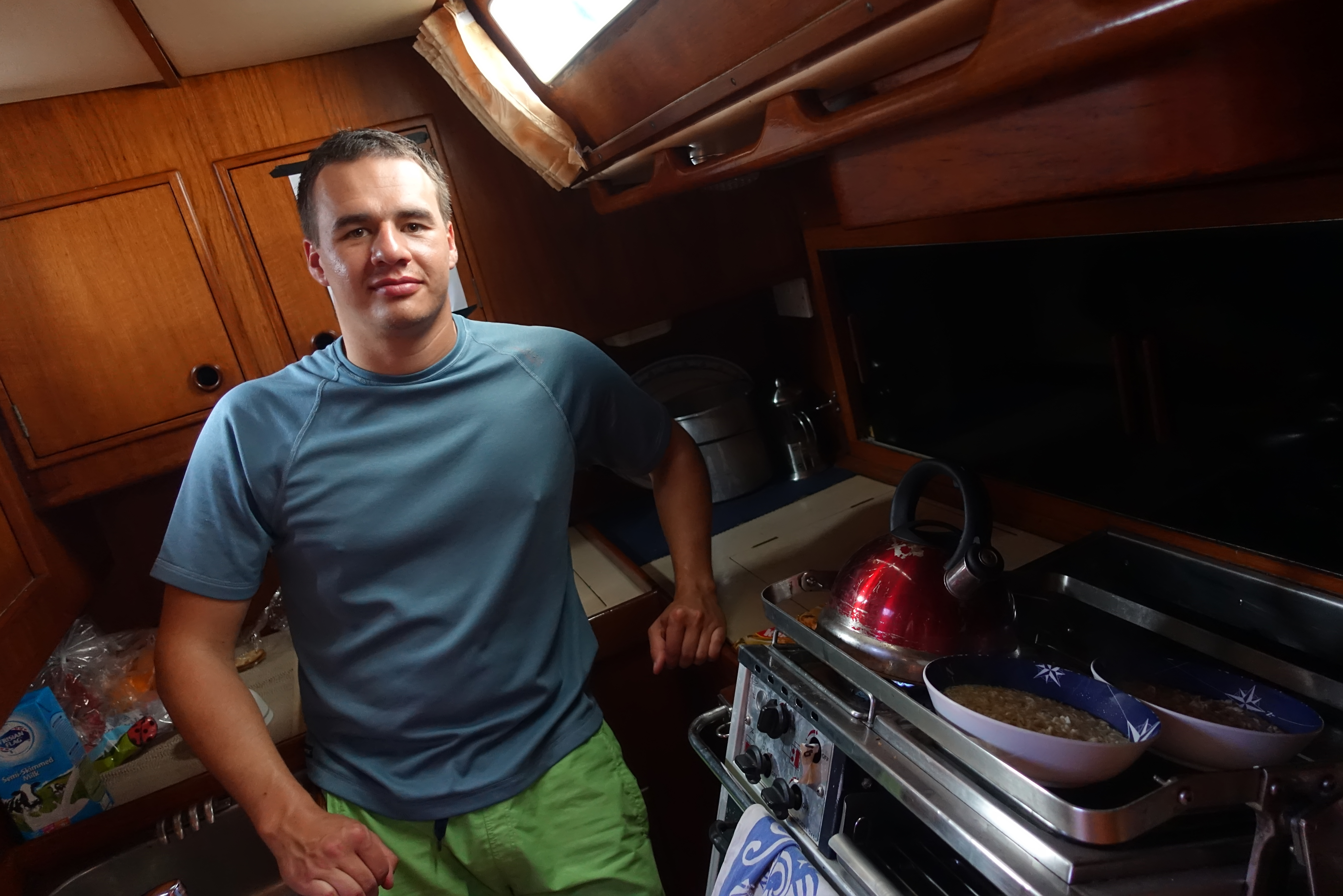Всего в нашем экипаже 10 человек, поделенные на две вахты. Капитан Люси и старпом Джеймс бодрствуют попеременно и руководят двумя вахтами, в каждую из которых входит по четверо человек. С нами вместе еще американский русский Саша и весельчак-мексиканец Вилли, во второй – четверо возрастных британцев. Вахты сменяются каждые четыре часа – с учетом времени на одевание/раздевание и перекус, на отдых и сон остается три раза в сутки по три часа. Традицией является приготовить разбуженной вахте чай или кофе, для чего список с именами и предпочтениями висит в кубрике.