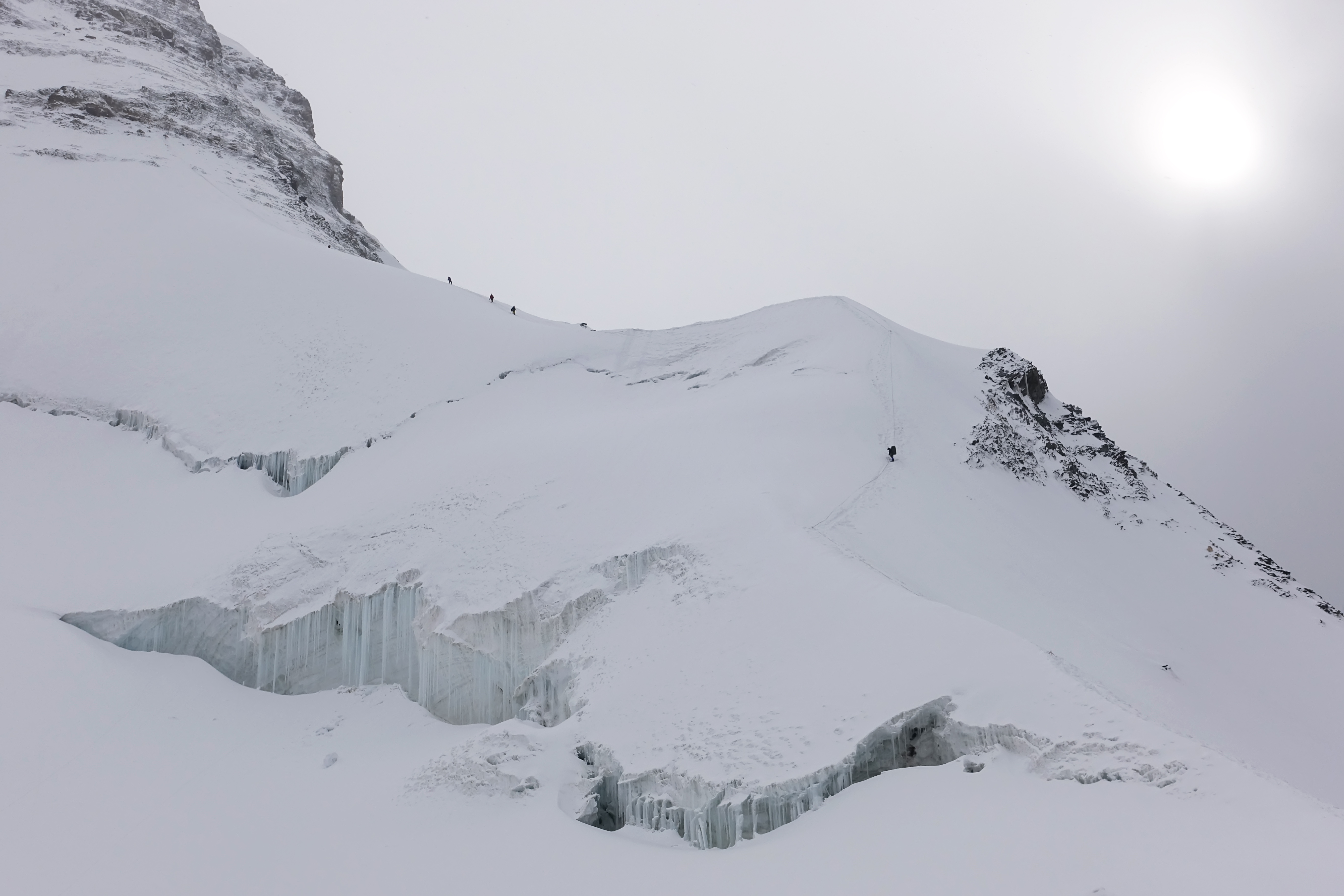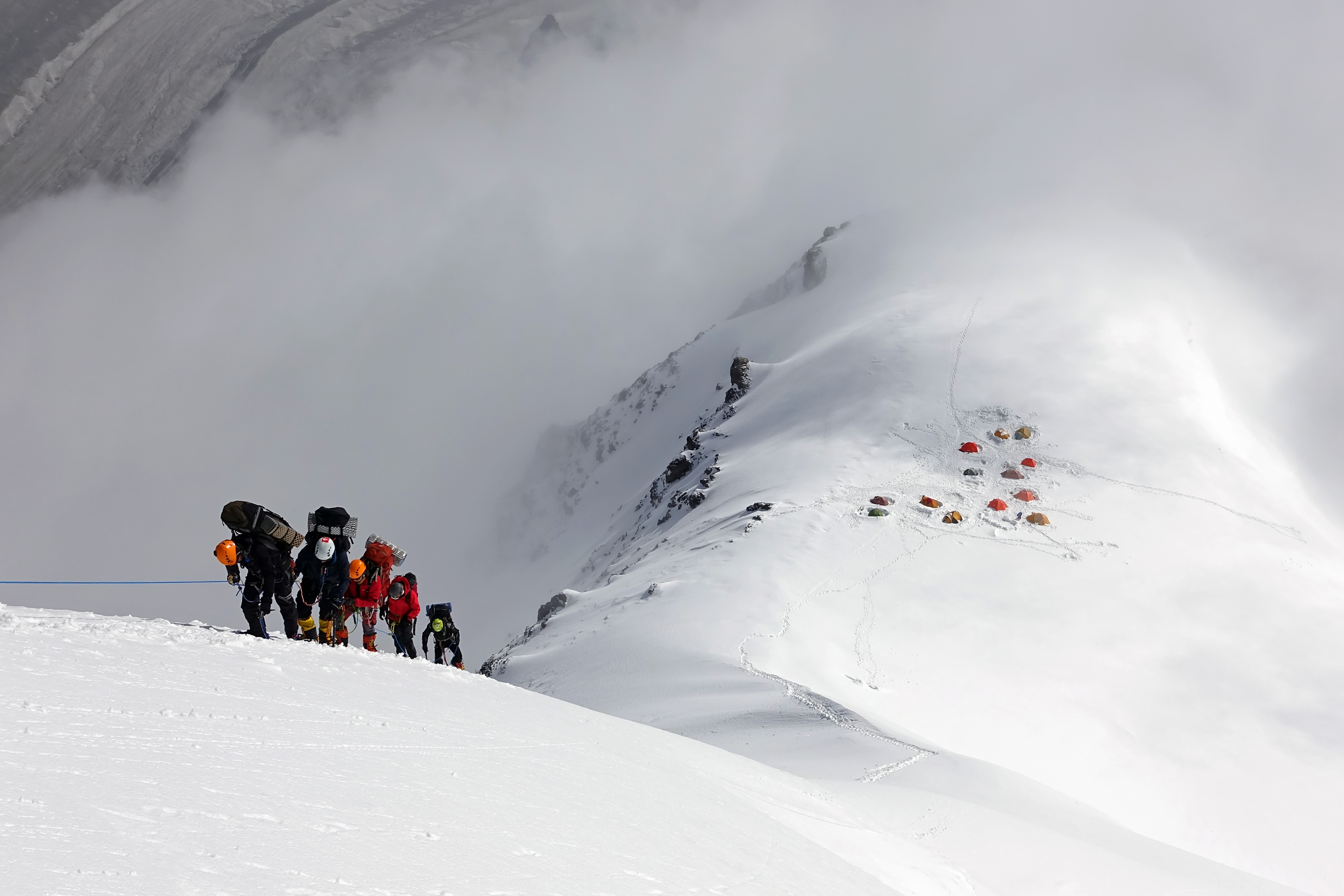 Третий выход на гору запомнился ухудшением погоды и поэтапным отстрелом ступеней нашей сборной ракеты – в БЛ остался с давлением Петю, в Л1 Алекс слег с животом, Дима решил выше не идти. В Л2 почувствовал себя хуже Аттила, а после Чапаева отказался от продолжения Дэвид. Признаться, на этом фоне сохранять мотивацию было трудно, но у меня не находилось какой-либо уважительной для самого себя причины, чтобы развернуться, и я шел дальше.