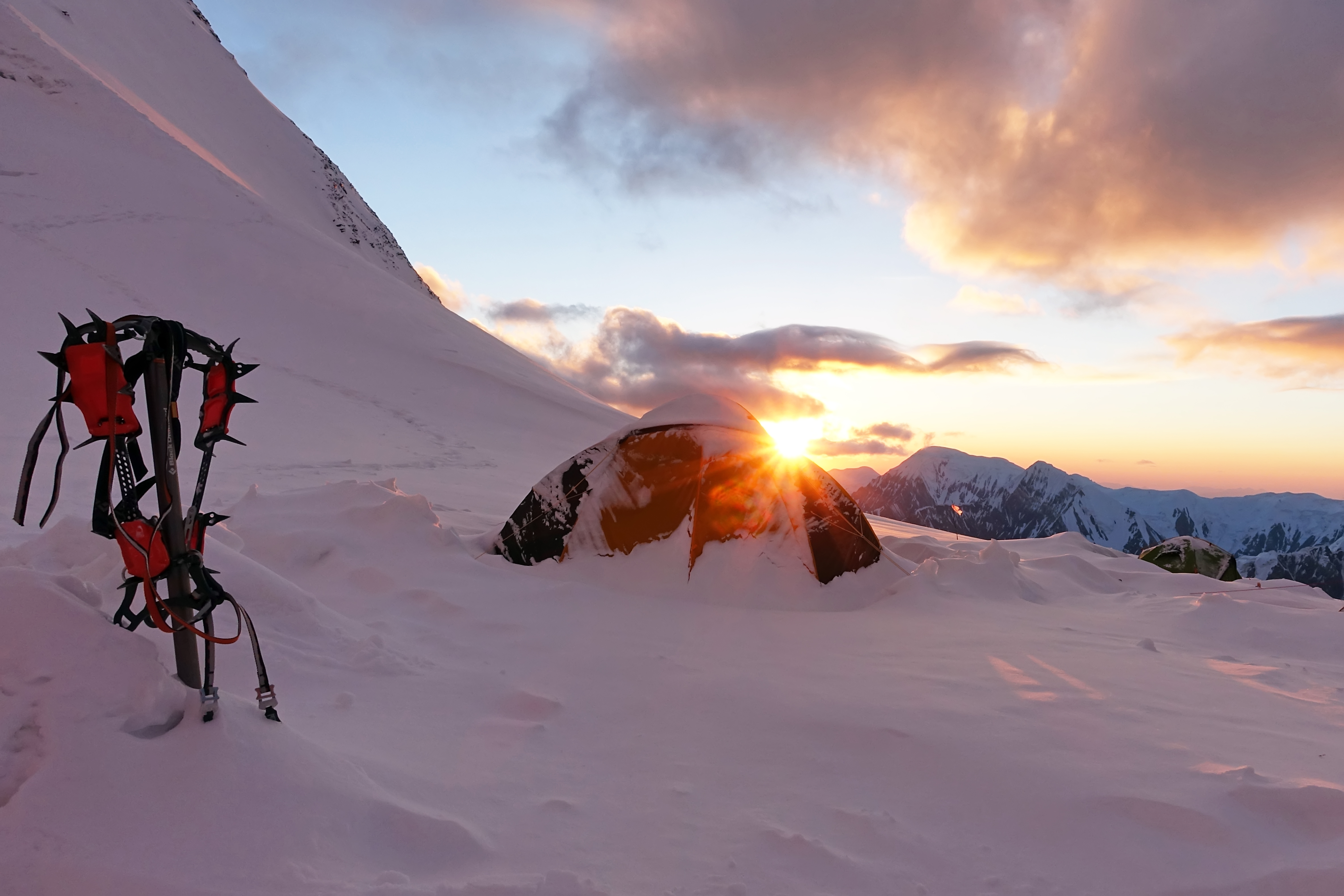 На следующий день мы поднялись в Л1 уже для ночевки. Сингапурцы, не спускаясь, ушли выше, зарыв часть еды неподалеку. На закате белая мраморная вершина Хана зажглась оранжевым на фоне темных соседних вершин. Я гулял по лагерю, выпивая один термос чая за другим, борясь с накатывавшей горняшкой. В палатке мы спали втроем с Димой и Алексом, но уместились только валетом. По рации сказали, что ищут шедшего с юга турка, и отключились до завтра.