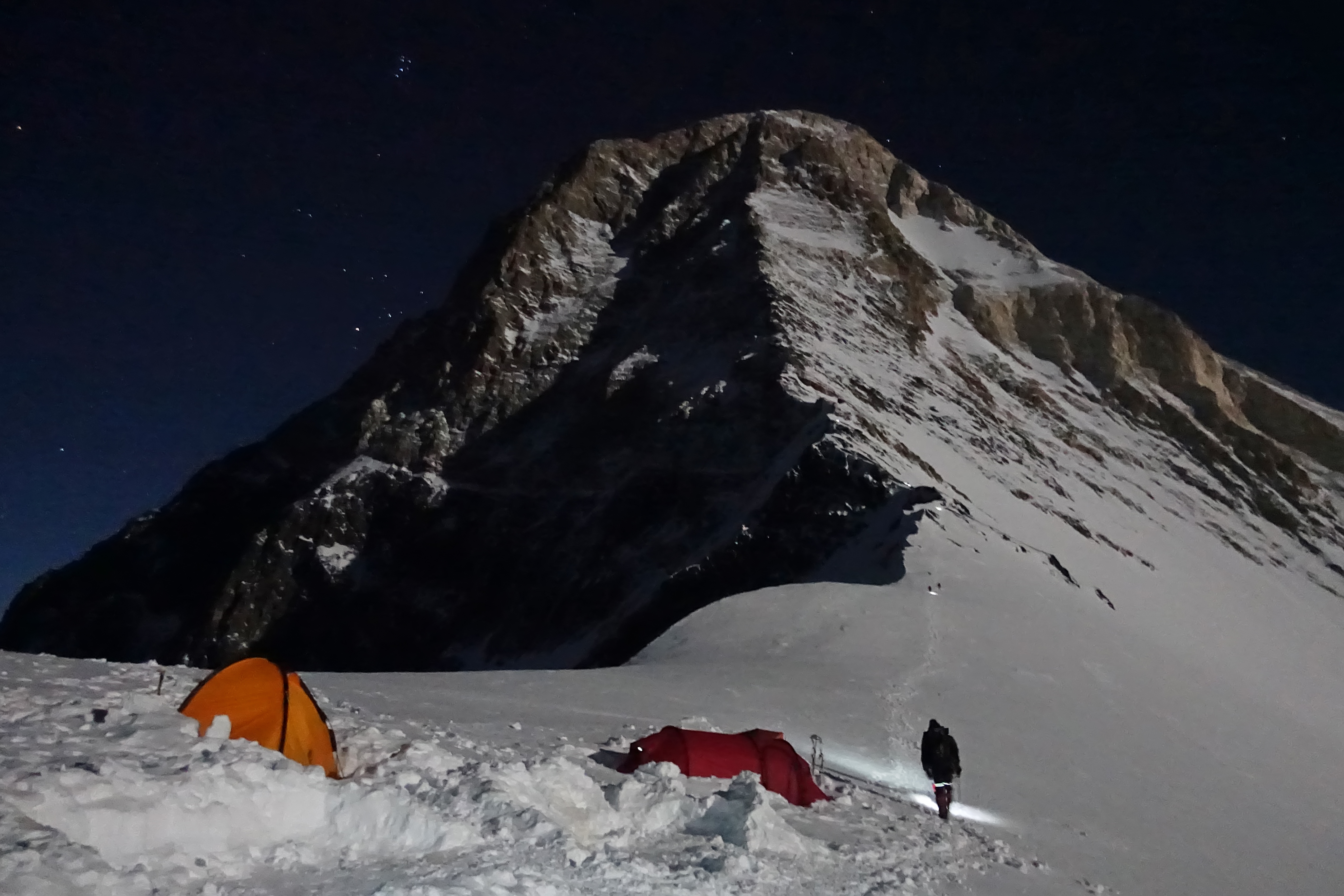 Два дня отдыха стали проверкой на прочность. В лагере царила расслабленная атмосфера – несколько команд “наелись” горами. Они гуляли и пили пиво с безмятежностью людей, у которых все позади. Нам же надо было наверх, четвертый раз через ледник тем же маршрутом 3 дня лезть до Л3 (5900 м), и потом штурм. Ночи стояли холодные и звездные. Немного отойдя от палаток, можно было почувствовать себя наедине с этими вечными снежными гигантами.
