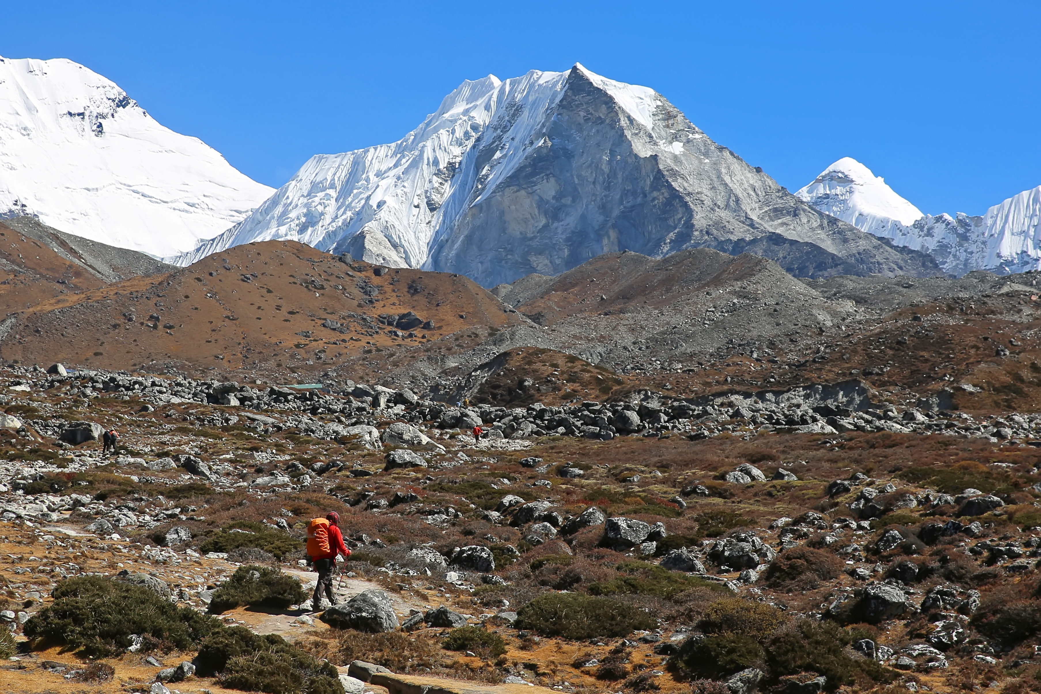 По мере продвижения вглубь Гималаев и набора высоты навстречу выплывают грандиозные Ама-Даблам (6,812 м), Нуптзе (7,861 м), Лходзе (8,516 м), Лходзе Шар (8,383 м), Эверест (8,848). Пространства поражают, могущество природы ощущается физически. Гималаи открывают свои завесы и пускают в самое свое сердце, где тишина звенит в ушах, солнце днем выжигает растительность и превращает все в пустыню, а ночью холод пронизывает до костей.