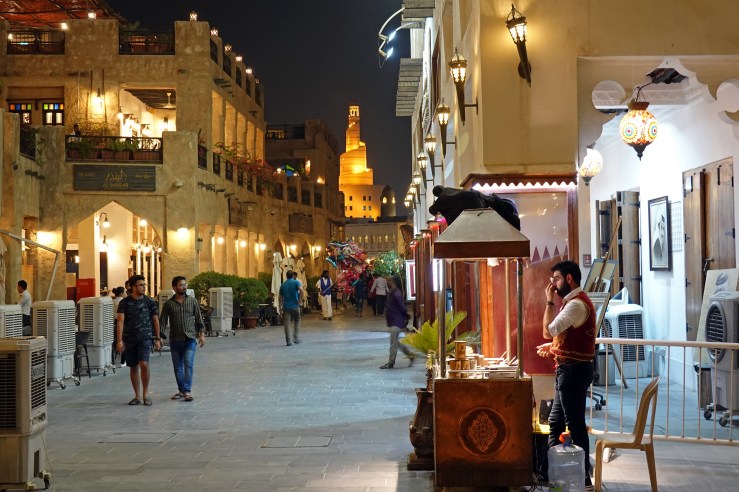 Катарцы в миллионной Дохе составляют меньшинство, поэтому город производит немного “вавилонское” впечатление. Из-за жары нет привычных арабских лавочек и кафе. Кроме традиционного рынка вся активность внутри помещений. Зато вдоль набережной стоят десятки круизных корабликов, которые отходят в середину залива, чтобы туристы в плавучих барах могли отдохнуть в привычном формате. С залива линия небоскребов напоминает Нью-Йорк или Гонконг. Сложно поверить, что еще в ХХ веке на этом месте был рыбацкий поселок.