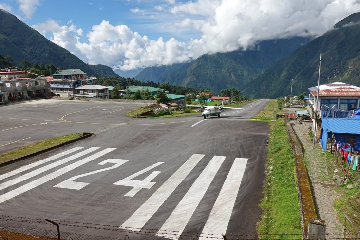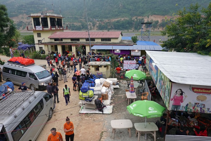 Немного погуляв по Катманду, пыльному и пестрому средневековому городу из параллельной для европейца вселенной, мы перепаковались по-походному и пошли спать. В 3 утра за нами приехал Тензи с водителем – предстоял 5-часовой путь до небольшого аэропорта Ramenchhap, откуда летают регулярные рейсы в Луклу аж целых 3-х местных авиакомпаний. За год тут поменялось многое: на месте курятника выросло кафе, а количество туристов утроилось. Появился забор, и стало нельзя просто обойти таможню вокруг здания прямо к самолету.