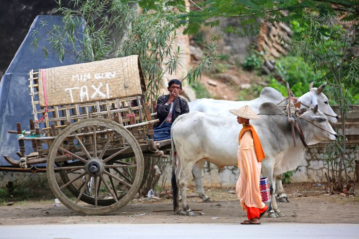 У тех же девушек можно купить шляпы и юбки, чтобы сделать художественные фотографии в еще одном уникальном месте – у белой пагоды Синбьюме-Пайя. Она была постоена правителем Багидау в память об умершей жене и отличатся от других пагод уникальным сочетанием цвета и формы. Пагода является физическим воплощением бирманских мифов о космической природе мироздания, соединяя в своей архитектуре 7 горных хребтов, 7 волн океана и 7 небес на пути к священной горе Меру. Невесты со всей Мьянмы едут сюда сделать фотографии перед свадьбой.