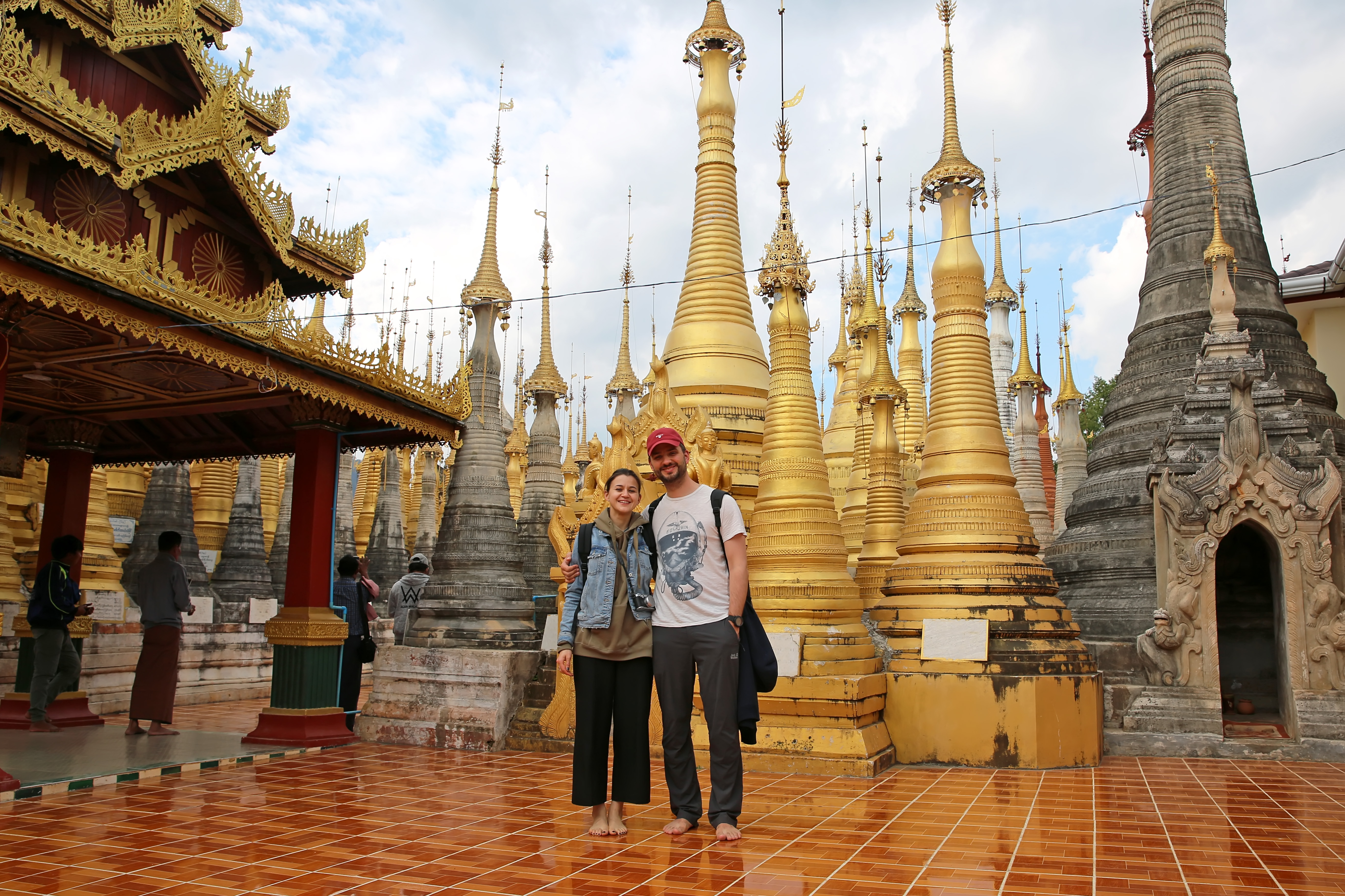 Изучив поистине первобытный уклад племени падаунг, мы вернулись в Лойко. При населении в 11,000 человек в сравнении с деревней он нам показался мегаполисом. Его главная достопримечательность – это храмовый комплекс на скале, откуда открывается живописный вид на город и на закат. Присмотревшись к шпилю пагоды, можно было увидеть всю изумительную филигранность ее отделки. Поэтому в Мьянме тоже запрещены дроны – чтобы не испортить святыни, украшенные золотой резьбой и драгоценными камнями. Спасало то, что сотрудники аэропортов не знали, как дроны выглядят, и принимали их за странные гаджеты.