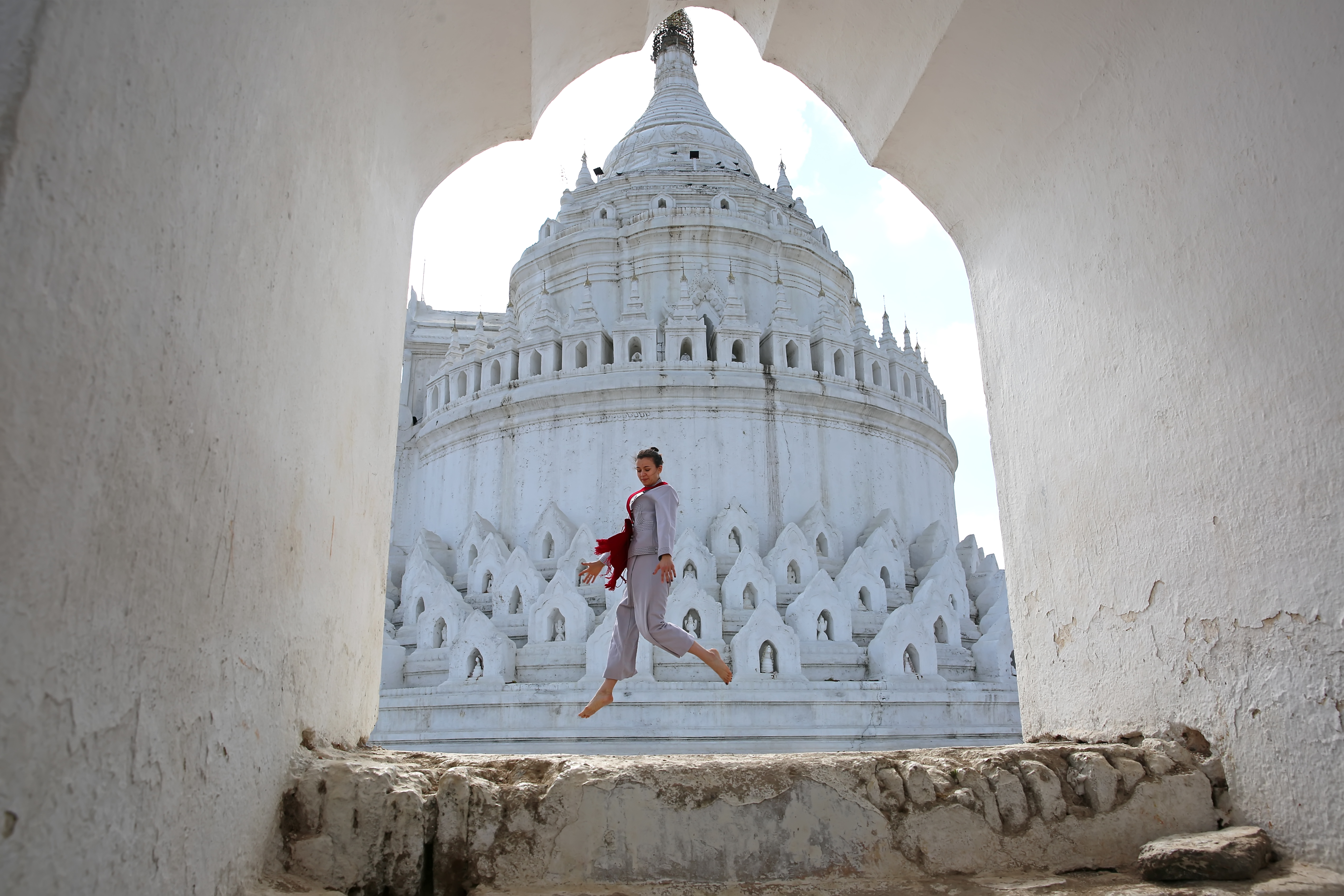 У тех же девушек можно купить шляпы и юбки, чтобы сделать художественные фотографии в еще одном уникальном месте – у белой пагоды Синбьюме-Пайя. Она была постоена правителем Багидау в память об умершей жене и отличатся от других пагод уникальным сочетанием цвета и формы. Пагода является физическим воплощением бирманских мифов о космической природе мироздания, соединяя в своей архитектуре 7 горных хребтов, 7 волн океана и 7 небес на пути к священной горе Меру. Невесты со всей Мьянмы едут сюда сделать фотографии перед свадьбой.